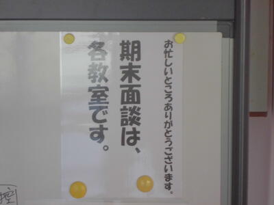 本日(12月15日(月))より、期末保護者面談です。19日(金)までの5日間になります。担任と保護者の2者面談です。担任からは2学期のお子さんの学校生活について、通知票をもとにお伝えすることになります。保護者の皆さまも師走でお忙しいところだと察します。誠に恐縮ではありますが、どうぞよろしくお願いします。