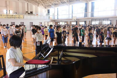 27日間の夏休みが終わり、8月19日(金)から2学期がスタートし、校舎内には元気な子ども達の笑顔と声が戻りました。始業式では、児童を代表して児童会長から、夏休みの思い出と2学期の児童会としての目標が発表され、これから始まる2学期の学校生活へのさらなる期待が高まりました。