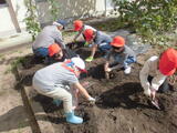 10月15日(水)2校時、1年生の生活科で中庭に植えいたサツマイモを収穫しました。地域ボランティアの方々にもご協力いただき、芋ほりの仕方を教わりながら、1年生みんなで移植ごてを使い畑をほりました。地域ボランティアの方がイモのつるを事前に処理してくれていたおかげでスムーズに作業できました。本当に感謝です。最大1.4kgのサツマイモを掘り出した子もいました。1年生のみんなもぐんぐん成長しています。