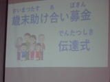 12月22日(月)2学期の終業式の中で、歳末助け合い募金の贈呈を行いました。この募金は児童会が主体となり、「お手伝い募金」として各家庭で児童自らがお手伝いをして得たお金を募金したものです。社会福祉協議会の方に来校いただいて集まった募金を寄付しました。金額は25,477円です。社会のために役立ててもらえれば募金した人たちも本望です。ご協力いただいた保護者の皆さまにも感謝申し上げます。