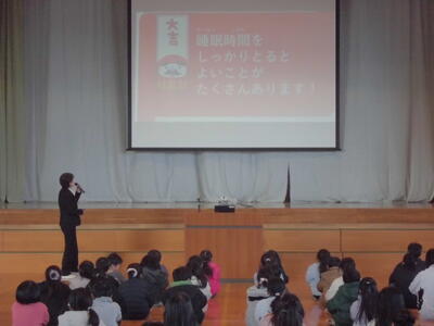 1月15日(木)、本日より3学期がスタートしました。冬休みを家庭や地域で過ごし、久しぶりに登校した子どもたちは一回り大きくなったように見えました。始業式では校長先生がおみくじ形式やクイズ形式で、3学期に頑張ってほしいことを話されました。特に睡眠関わって、身体の成長、記憶の定着、心の回復安定の3つの視点からその大切さについて話されました。合わせて、冬休みの頑張ったことの紹介として1月18日(日)に行われる第44回藤沢子ども郷土芸能発表会に参加する子どもたちにも触れられました。児童代表では新児童会長が冬休みの思い出と3学期に頑張ることを話しました。相手の気持ちを考えられる学校にしたいと決意を述べ、あいさつやふわふわ言葉を頑張っていこうと呼びかけました。短い3学期ですが、今年度のまとめと次年度への向けての準備となる大切な学期です。期待したいです。